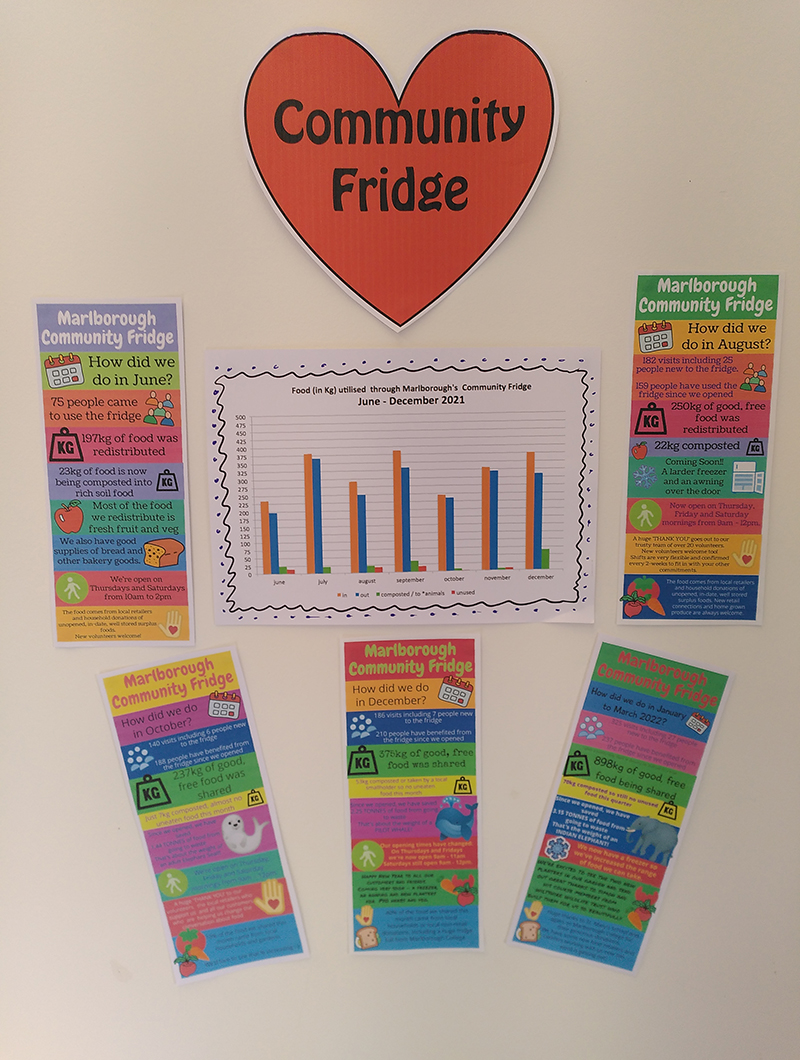 It is a joyful partnership project with Marlborough Town Council and first opened its doors in June 2021. We have a dedicated team of wonderful volunteers who pick up surplus food from various local food retailers and redistribute it, for free, through the fridge to anyone who can use it. No referrals needed, no questions asked, just a friendly welcome and an invitation to help us prevent good food from going to waste.