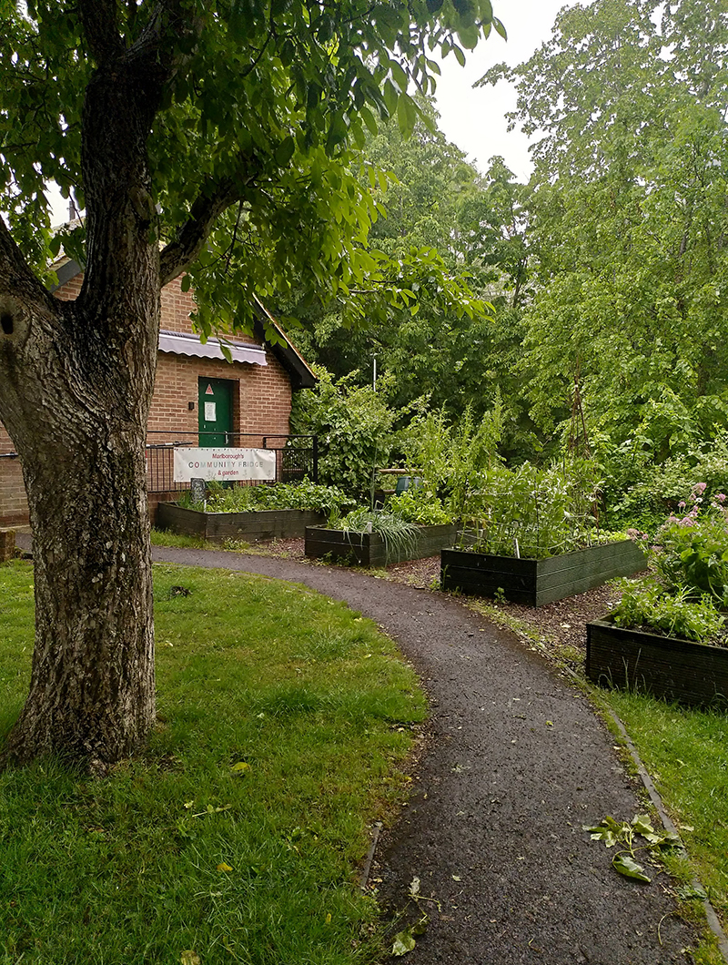 In June 2025 we received a Hubbub grant of £3000 to put in a community noticeboard, develop the community garden project, extend the growing space, improve the water management and install some seating. The noticeboard is now in place and we have been lucky to find ourselves the site of a Town Council and ARK (Action for the River Kennet) partnership project for the installation of two rain-planters and capacity for 1000 litres of rainwater collection.